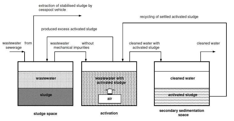 AS-VARIOcomp 5K använder en syresatt biologisk process som bryter ner organiskt material på ett naturligt och energieffektivt sätt. Reningen sker i flera steg – från slamavskiljning till klarvattenzon – och uppnår reningsnivåer över 95 % BOD₅ enligt EN 12566-3/A2.